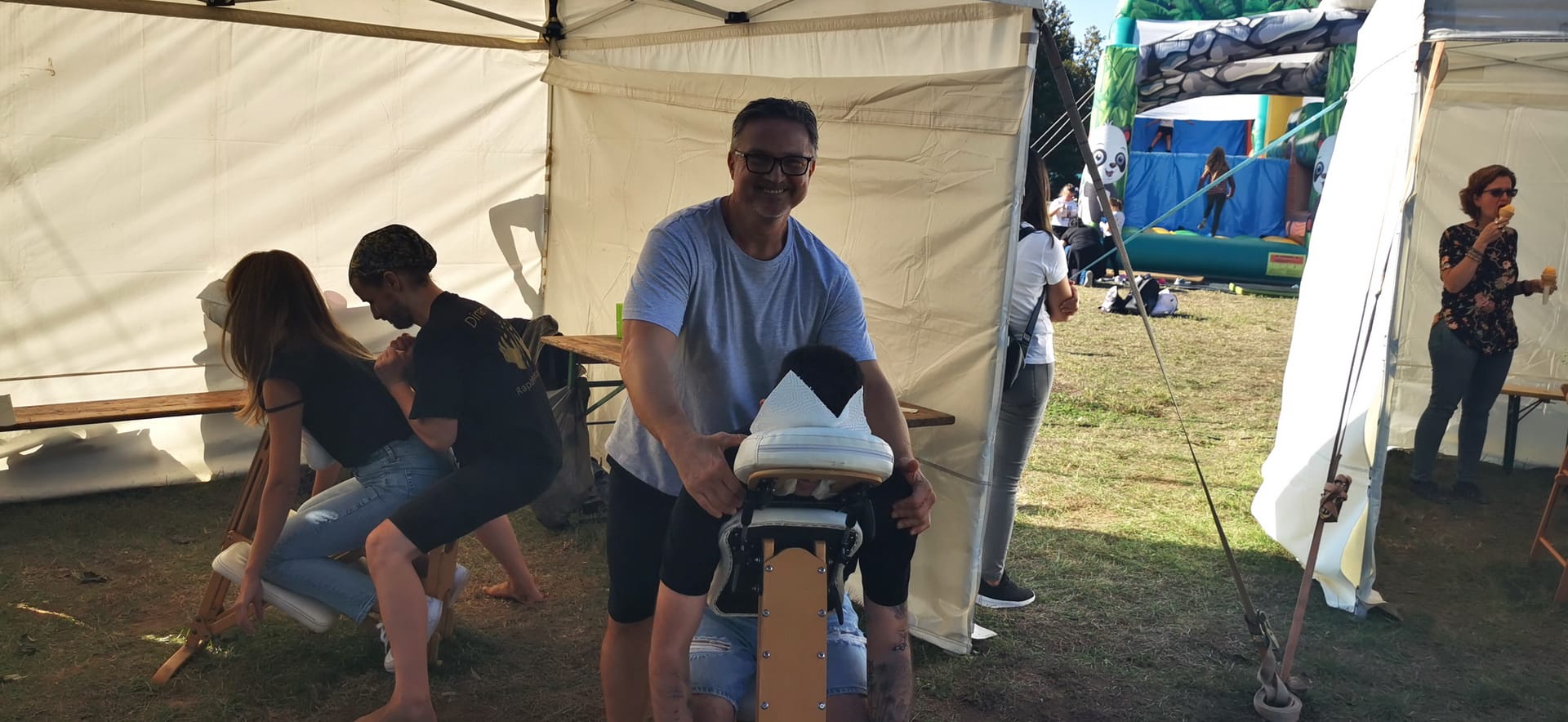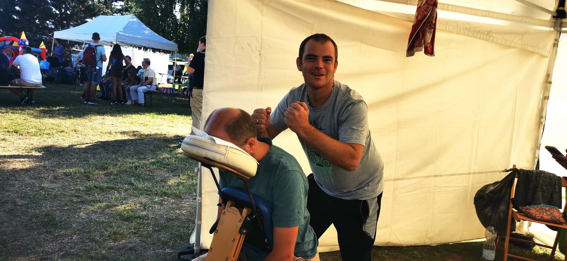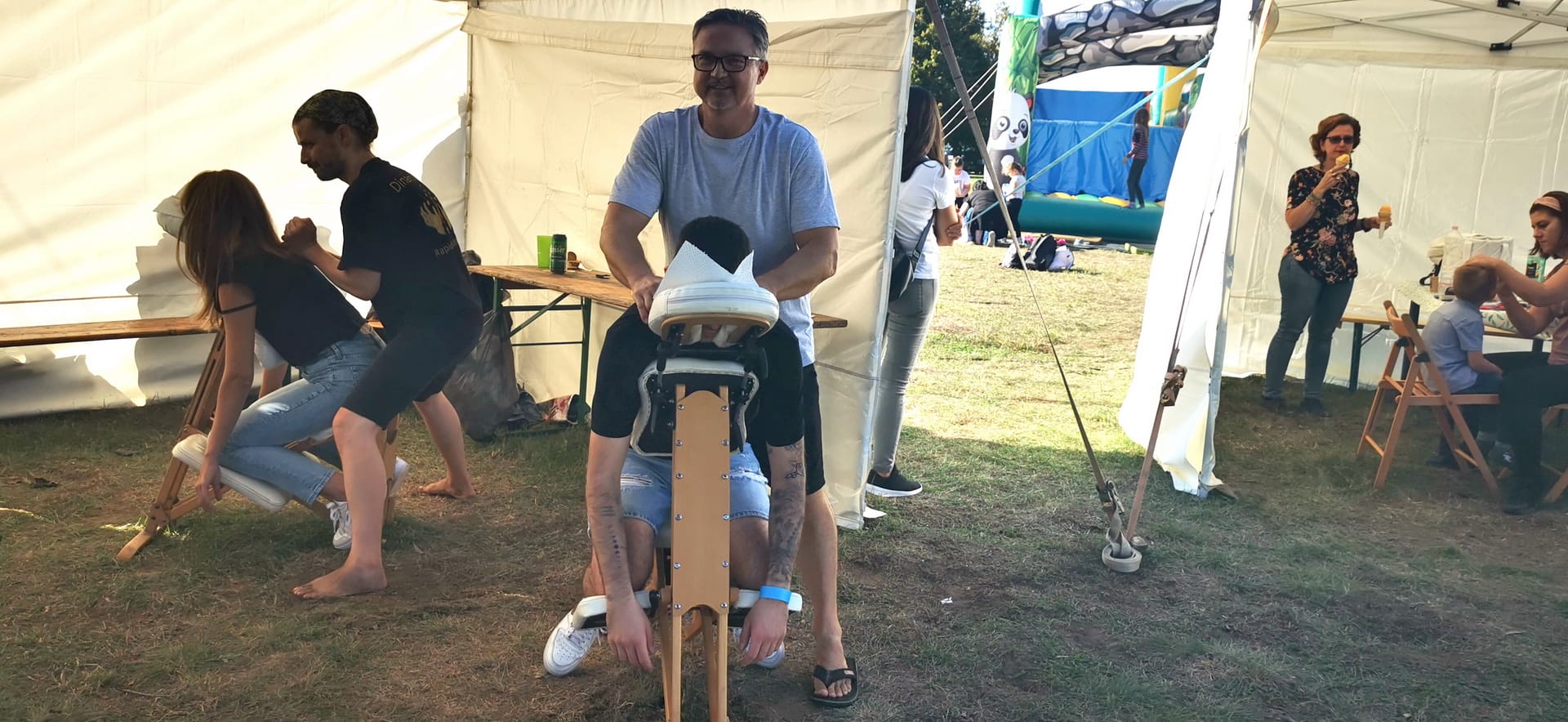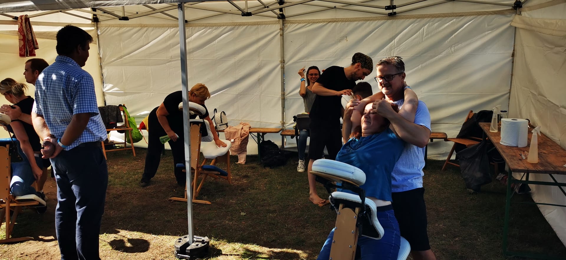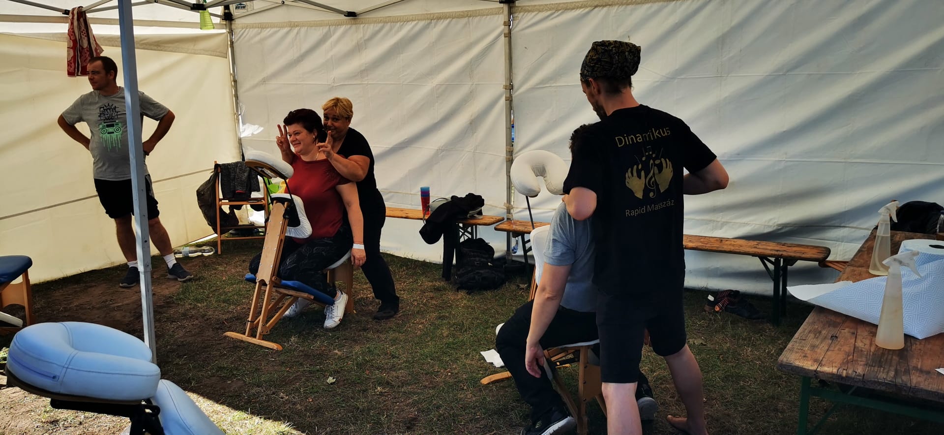 A megfáradt piknikezők, és a szolgáltatók is örömmel tértek be hozzánk egy kis ellazulásra, felfrissülésre. A masszázs nagy sikert aratott, a kezdetektől fogva mind a négy szék végig használatban volt.